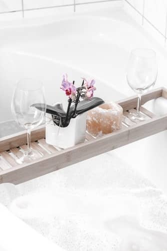 A bath caddy is essential for getting the luxury and convenience of a spa in your bathroom. These can be bought from a lot of home supply and DIY stores. They are also often pretty inexpensive. I would recommend opting for something made in wood. This is because it adds a natural feel to your bathroom, as well as being light and less likely to damage your bath. A bath caddy is a simple way to make your bathroom feel like a spa!