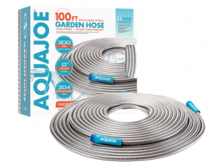The Bionic Steel Pro Garden Hose comes in either 50 foot or 100-foot sections. It uses 304 stainless steel for its outer housing which is puncture-proof and deters corrosion and cracking in the sunlight. The inner lining is a pressure-resistant latex -lined lumen that can handle up to 497 PSI of pressure.